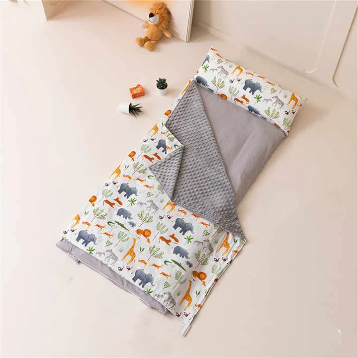 „Blue Toddler Camping Nap Bag“ „RollUp“ dizainas leidžia kilimėliui lengvai keliauti, taip pat patogiai pritvirtintų uždarymo dirželiai ir nešiojimo rankena.
