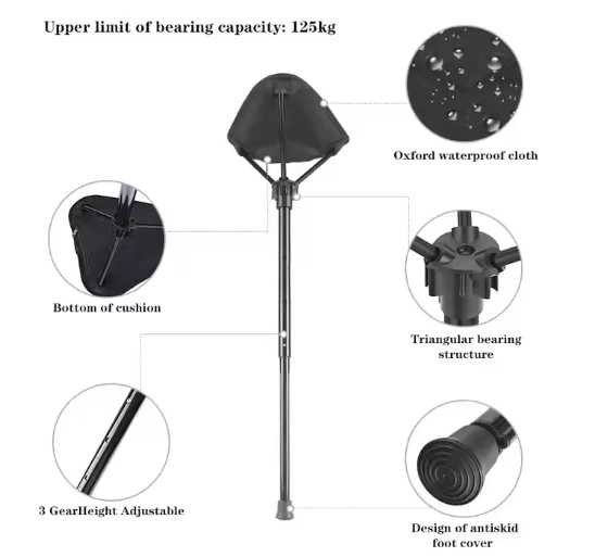 Sulankstoma kelionės kėdė, apdaila su dvigubu sluoksniu Oksfordu ant trikojo sėdynės paviršiaus, patvaresnė ir stabili, šios trikojo stovyklos išmatos, skirtos suaugusiems 300 svarų, tinka dideliam ir aukštam asmeniui, kad galėtų mėgautis patogia patirtimi.