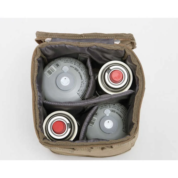 Dujinės viryklės skardinės puodų nešiojimo krepšys, kitas panašaus dydžio geriamojo butano degalų kanistrai. Taip pat gali būti naudojamas kitiems kempingo priedams, kai pašalinamas vidinis daliklis