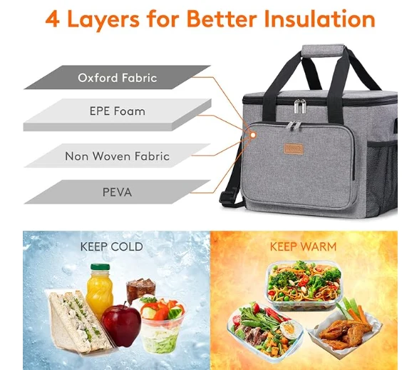 Izoliuotas pikniko maišas, pietų maišas pagamintas iš izoliuotos medžiagos, kuri daugiau nei 5 valandas gali išlaikyti maistą ir gėrimus vėsų ar šiltą. Be to, interjero pamušalas yra pagamintas iš maisto kokybės peva folijos, todėl galite į maišą įdėti tiesiai į maišą, nesijaudindami. Įrengtos 6 mm EPE putos suteikia puikią apsaugą jūsų konteineriams, maistui ir gėrimams.