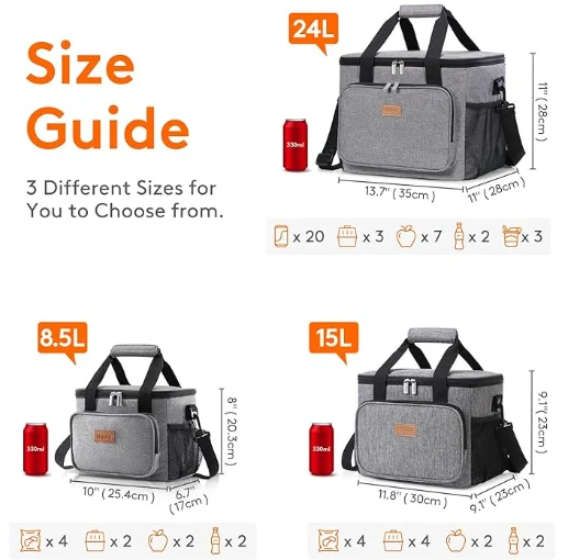Didelė talpa: matmenys - 13,8 "(35 cm) × 11" (28 cm) × 11 "(28 cm). Maksimali suaugusiųjų pietų dėžutės talpa yra 24 l ir yra pakankamai erdvi, kad būtų galima laikyti 40 skardinių (330 ml), arba jūsų pietums, pavyzdžiui, sumuštiniams, salotose, užkandžiams, gėrimams ir vaisiams, o ne.