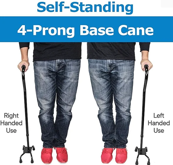 „Old Man Medical“ cukranendrės, kiekviena liežuvis yra padengtas anti -slydimo gumos cukranendrių antgaliu, kad būtų papildomas stabilumas ir saugumas. Keturiųjų bazė daro ją savaime stovinčia cukranendrėmis, pašalinančiomis ar kristi ant grindų. Puikiai tinka po operacijos, kai negalite sulenkti ar pasiekti.