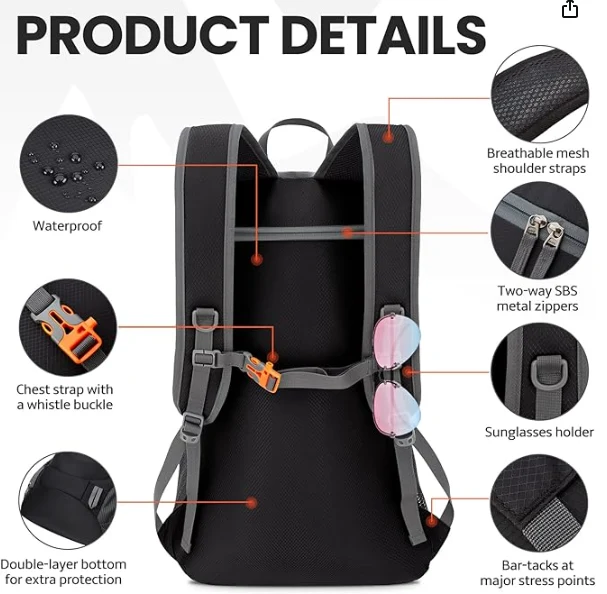 Neperšlampamas pėsčiųjų kuprinė, krūtinės ląstos spaustukas su švilpuko sagtimi puikiai tinka paskirstyti pakuotės svorį ir išlaikyti ją stabilią bei centrą. Privaloma sportuoti, žygiuoti pėsčiomis ir „Campingzhejiang Jiayu Outdoor Products Co., Ltd.“. Šis dizainas garantuoja